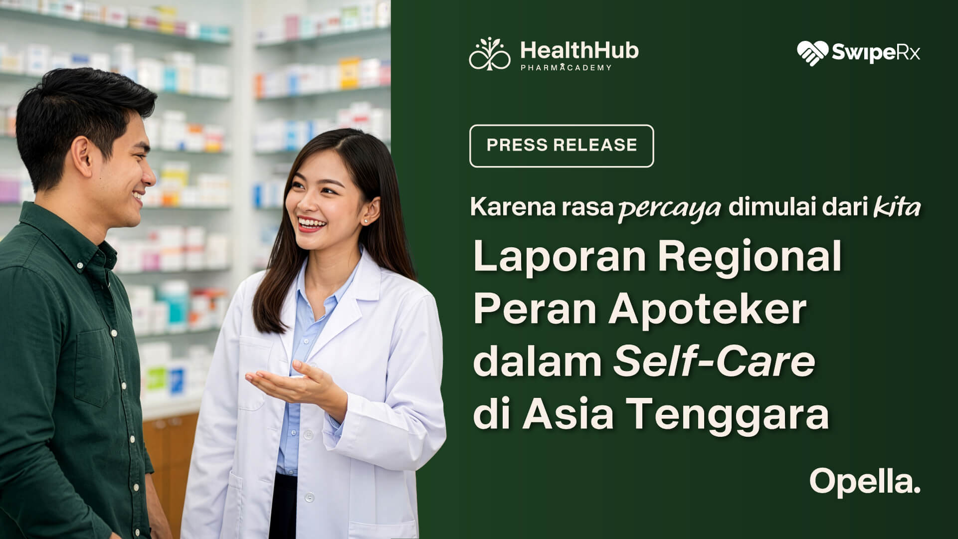 Singapura — 2 April 2026 — SwipeRx, platform profesional farmasi terbesar di Asia Tenggara, bersama Opella, hari ini meluncurkan position paper terbaru berjudul Trust Begins at the Counter: A Roadmap for Pharmacy-Led Self-Care (2023–2028), yang mendorong pengakuan lebih besar terhadap peran apoteker komunitas sebagai mitra terdepan dalam meningkatkan literasi kesehatan, self-care, dan akses layanan kesehatan yang lebih merata di seluruh Asia Tenggara.
