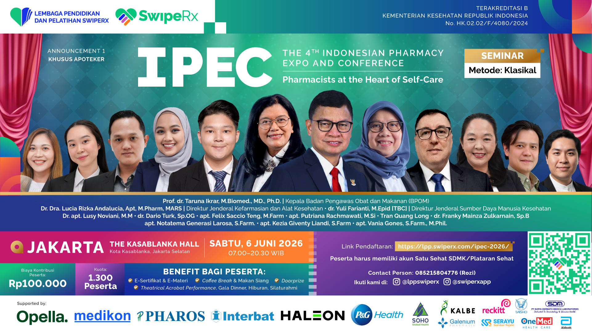 Organized by Lembaga Pendidikan dan Pelatihan (LPP) SwipeRx, Ministry of Health of the Republic of Indonesia certified training institution, and part of Southeast Asia’s largest pharmacy community network, IPEC continues its mission to strengthen pharmacist capabilities through high-quality education, collaboration, and innovation.